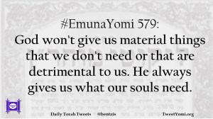#EmunaYomi 579: God won’t give us material things that we don’t need or that are detrimental to us. He always gives us what our souls need.