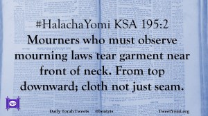 #HalachaYomi KSA 195:2 Mourners who must observe mourning laws tear garment near front of neck. From top downward; cloth not just seam.