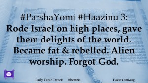 #ParshaYomi #Haazinu 3: Rode Israel on high places, gave them delights of the world. Became fat & rebelled. Alien worship. Forgot God