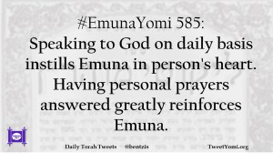 #EmunaYomi 585: Speaking to God on daily basis instills Emuna in person’s heart. Having personal prayers answered greatly reinforces Emuna.