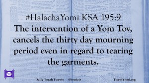 #HalachaYomi KSA 195:9 The intervention of a Yom Tov, cancels the thirty day mourning period even in regard to tearing the garments.