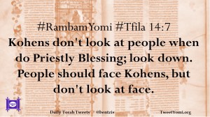 #RambamYomi #Tfila 14:7 Kohens don’t look at people when do Priestly Blessing; look down. People should face Kohens, but don’t look at face.
