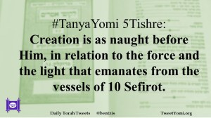 #TanyaYomi 5Tishre: Creation is as naught before Him, in relation to the force and the light that emanates from the vessels of 10 Sefirot.
