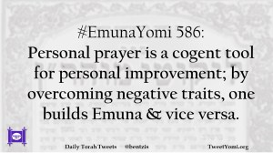 #EmunaYomi 586: Personal prayer is a cogent tool for personal improvement; by overcoming negative traits, one builds Emuna & vice versa.