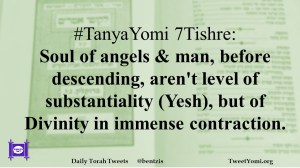 #TanyaYomi 7Tishre: Soul of angels & man, before descending, aren’t level of substantiality (Yesh), but of Divinity in immense contraction.