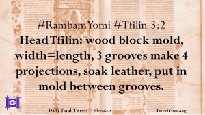 #RambamYomi #Tfilin 3:2 Head Tfilin: wood block mold, width=length, 3 grooves make 4 projections, soak leather, put in mold between grooves.