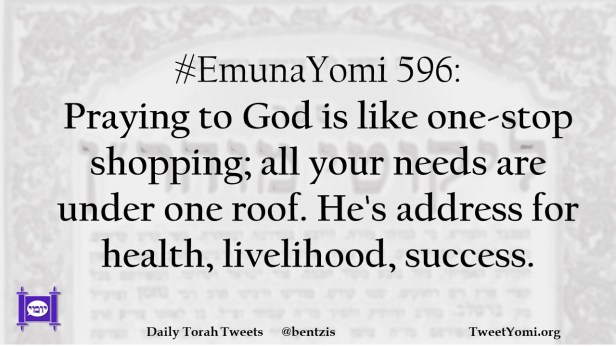 #EmunaYomi 596: Praying to God is like one-stop shopping; all your needs are under one roof. He’s address for health, livelihood, success.