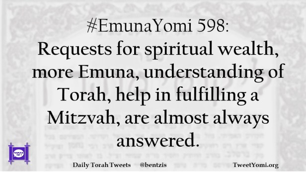 #EmunaYomi 598: Requests for spiritual wealth, more Emuna, understanding of Torah, help in fulfilling a Mitzvah, are almost always answered.