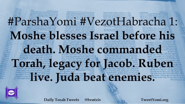 #ParshaYomi #VezotHabracha 1: Moshe blesses Israel before his death. Moshe commanded Torah, legacy for Jacob. Ruben live. Juda beat enemies.