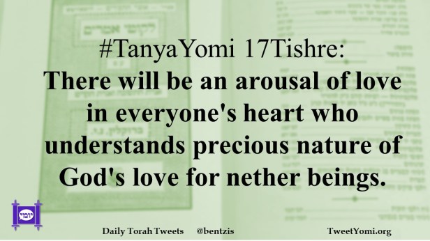 #TanyaYomi 17Tishre: There will be an arousal of love in everyone’s heart who understands precious nature of God’s love for nether beings.