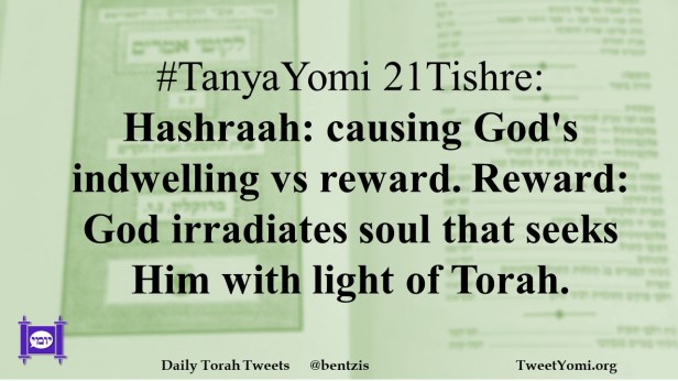 #TanyaYomi 21Tishre: Hashraah: causing God’s indwelling vs reward. Reward: God irradiates soul that seeks Him with light of Torah.