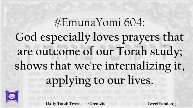 #EmunaYomi 604: God especially loves prayers that are outcome of our Torah study; shows that we’re internalizing it, applying to our lives.