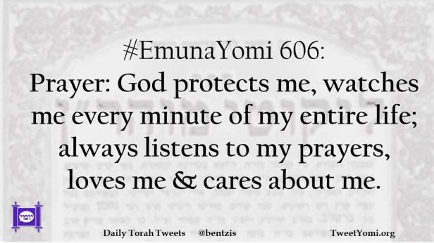 #EmunaYomi 606: Prayer: God protects me, watches me every minute of my entire life; always listens to my prayers, loves me & cares about me.