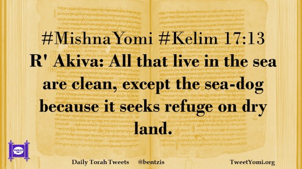 #MishnaYomi #Kelim 17:13 R’ Akiva: All that live in the sea are clean, except the sea-dog because it seeks refuge on dry land.