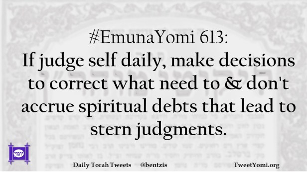 #EmunaYomi 613: If judge self daily, make decisions to correct what need to & don’t accrue spiritual debts that lead to stern judgments.