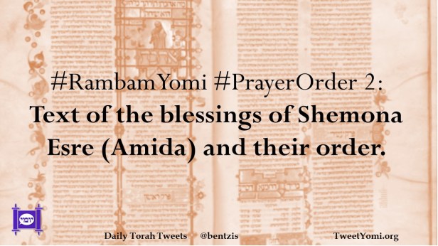 PrayerOrder, RambamYomi #RambamYomi #PrayerOrder 2 Date: October 23, 2020Author: ysspitz #RambamYomi #PrayerOrder 2: Text of the blessings of Shemona Esre (Amida) and their order. Share this: Share on X (Opens in new window) X Share on Facebook (Opens in new window) Facebook Like Loading... Related