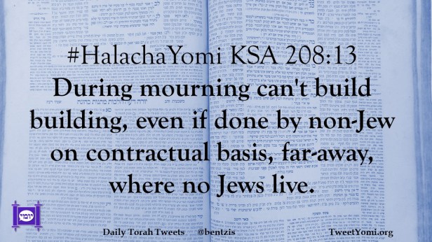 #HalachaYomi KSA 208:13 During mourning can’t build building, even if done by non-Jew on contractual basis, far-away, where no Jews live.