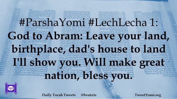 #ParshaYomi #LechLecha 1: God to Abram: Leave your land, birthplace, dad’s house to land I’ll show you. Will make great nation, bless you.