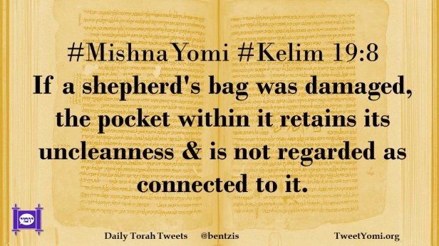 #MishnaYomi #Kelim 19:8 If a shepherd’s bag was damaged, the pocket within it retains its uncleanness & is not regarded as connected to it.