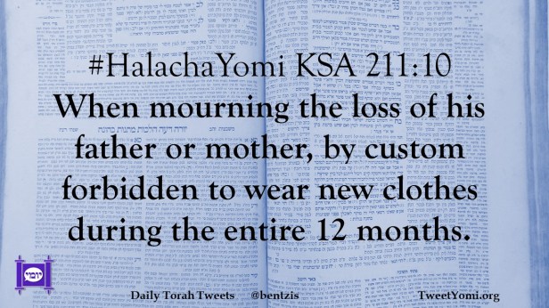 #HalachaYomi KSA 211:10 When mourning the loss of his father or mother, by custom forbidden to wear new clothes during the entire 12 months.