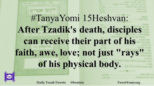 #TanyaYomi 15Heshvan: After Tzadik’s death, disciples can receive their part of his faith, awe, love; not just “rays” of his physical body.