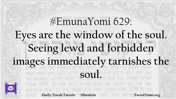 EmunaYomi #EmunaYomi 629 Date: November 13, 2020Author: ysspitz #EmunaYomi 629: Eyes are the window of the soul. Seeing lewd and forbidden images immediately tarnishes the soul. Share this: Share on X (Opens in new window) X Share on Facebook (Opens in new window) Facebook Like Loading... Related