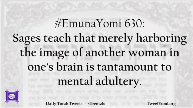 #EmunaYomi 630: Sages teach that merely harboring the image of another woman in one’s brain is tantamount to mental adultery.
