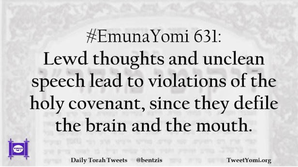 #EmunaYomi 631: Lewd thoughts and unclean speech lead to violations of the holy covenant, since they defile the brain and the mouth.