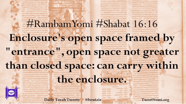 #RambamYomi #Shabat 16:16 Enclosure’s open space framed by “entrance”, open space not greater than closed space: can carry within the enclosure.