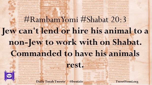 #RambamYomi #Shabat 20:3 Jew can’t lend or hire his animal to a non-Jew to work with on Shabat. Commanded to have his animals rest.