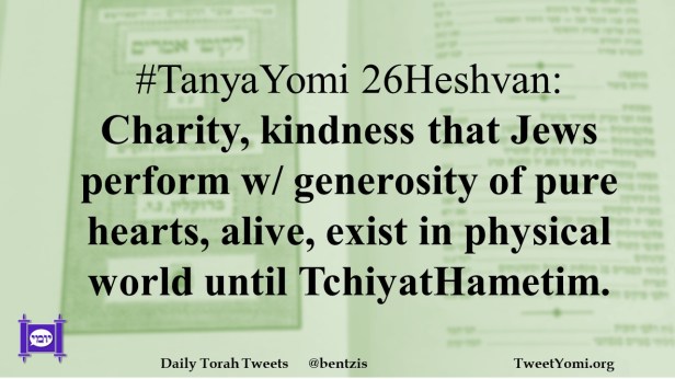 #TanyaYomi 26Heshvan: Charity, kindness that Jews perform w/ generosity of pure hearts, alive, exist in physical world until TchiyatHametim.