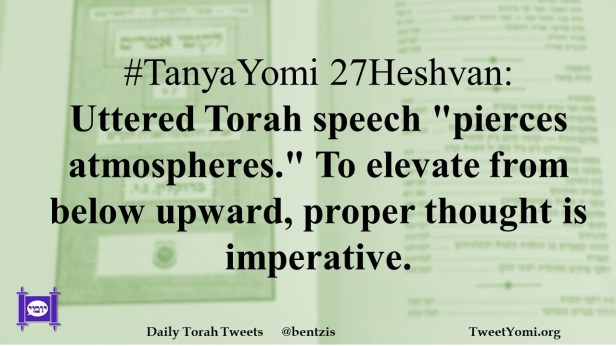 #TanyaYomi 27Heshvan: Uttered Torah speech “pierces atmospheres.” To elevate from below upward, proper thought is imperative.