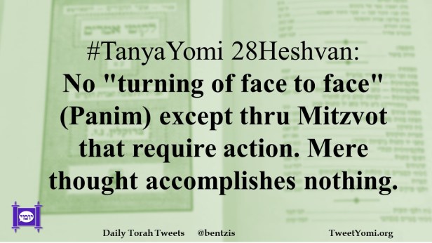 #TanyaYomi 28Heshvan: No “turning of face to face” (Panim) except thru Mitzvot that require action. Mere thought accomplishes nothing.