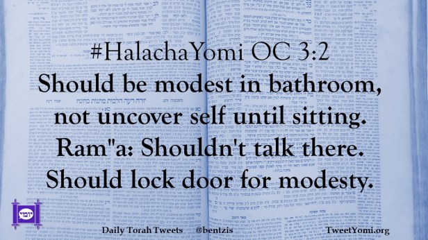 #HalachaYomi OC 3:2 Should be modest in bathroom, not uncover self until sitting. Ram”a: Shouldn’t talk there. Should lock door for modesty.