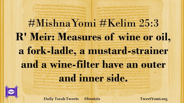 #MishnaYomi #Kelim 25:3 R’ Meir: Measures of wine or oil, a fork-ladle, a mustard-strainer and a wine-filter have an outer and inner side.