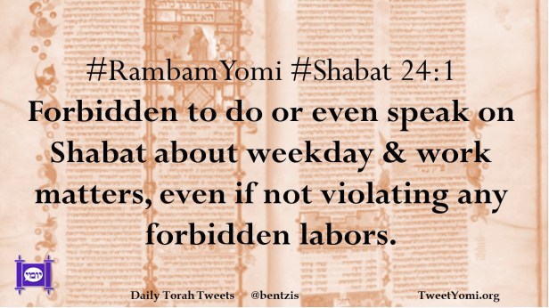#RambamYomi #Shabat 24:1 Forbidden to do or even speak on Shabat about weekday & work matters, even if not violating any forbidden labors.