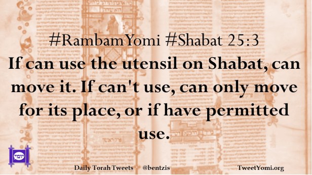 #RambamYomi #Shabat 25:3 If can use the utensil on Shabat, can move it. If can’t use, can only move for its place, or if have permitted use.