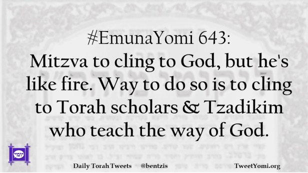 #EmunaYomi 643: Mitzva to cling to God, but he’s like fire. Way to do so is to cling to Torah scholars & Tzadikim who teach the way of God.