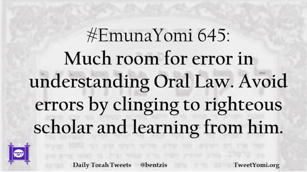 #EmunaYomi 645: Much room for error in understanding Oral Law. Avoid errors by clinging to righteous scholar and learning from him.