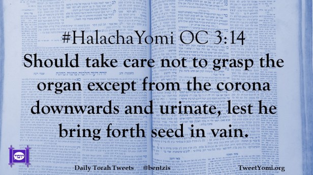 #HalachaYomi OC 3:14 Should take care not to grasp the organ except from the corona downwards and urinate, lest he bring forth seed in vain.