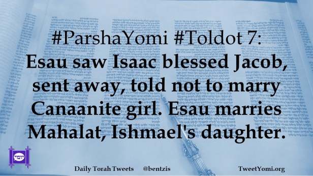 #ParshaYomi #Toldot 7: Esau saw Isaac blessed Jacob, sent away, told not to marry Canaanite girl. Esau marries Mahalat, Ishmael’s daughter.