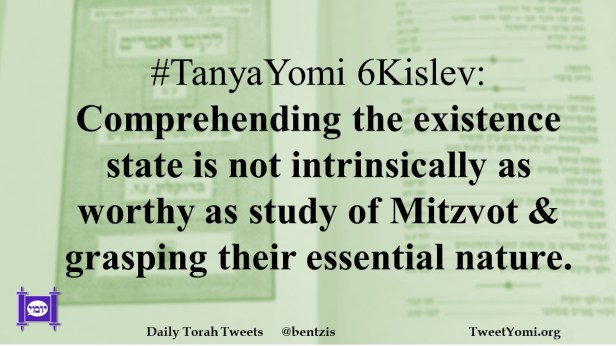 #TanyaYomi 6Kislev: Comprehending the existence state is not intrinsically as worthy as study of Mitzvot & grasping their essential nature.