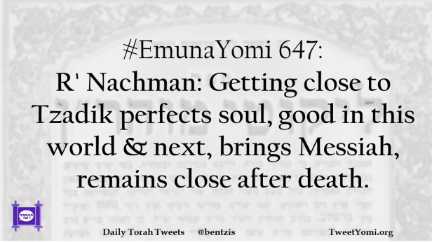 #EmunaYomi 647: R’ Nachman: Getting close to Tzadik perfects soul, good in this world & next, brings Messiah, remains close after death.