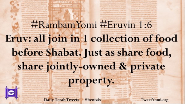 #RambamYomi #Eruvin 1:6 Eruv: all join in 1 collection of food before Shabat. Just as share food, share jointly-owned & private property.