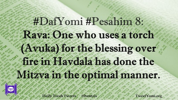 DafYomi, Pesahim #DafYomi #Pesahim 8 Date: December 17, 2020Author: ysspitz #DafYomi #Pesahim 8: Rava: One who uses a torch (Avuka) for the blessing over fire in Havdala has done the Mitzva in the optimal manner. Share this: Share on X (Opens in new window) X Share on Facebook (Opens in new window) Facebook Like Loading... Related