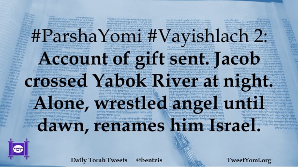 #ParshaYomi #Vayishlach 2: Account of gift sent. Jacob crossed Yabok River at night. Alone, wrestled angel until dawn, renames him Israel.