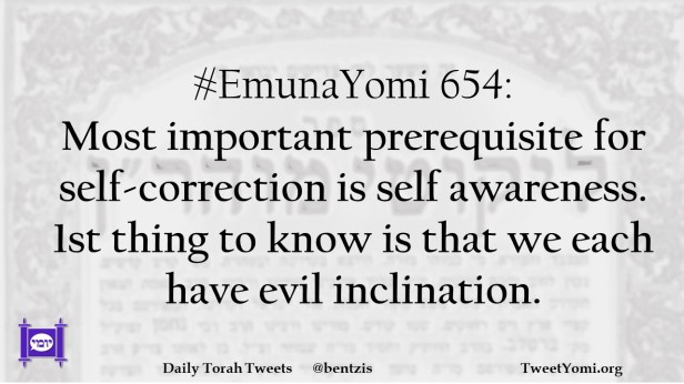 #EmunaYomi 654: Most important prerequisite for self-correction is self awareness. 1st thing to know is that we each have evil inclination.