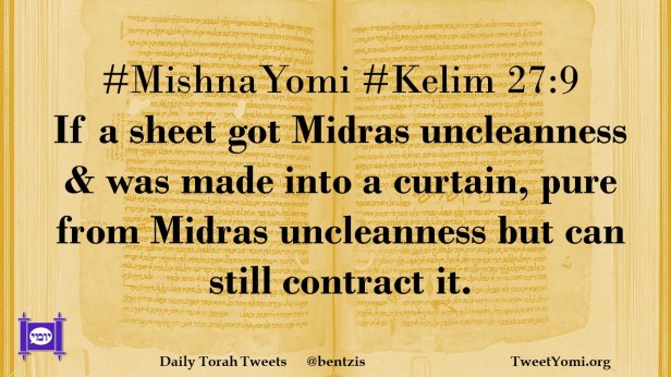 #MishnaYomi #Kelim 27:9 If a sheet got Midras uncleanness & was made into a curtain, pure from Midras uncleanness but can still contract it.