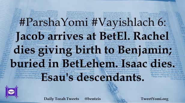 #ParshaYomi #Vayishlach 6: Jacob arrives at BetEl. Rachel dies giving birth to Benjamin; buried in BetLehem. Isaac dies. Esau’s descendants.