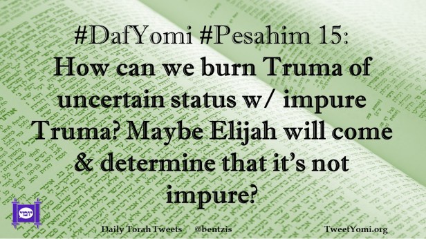 DafYomi, Pesahim #DafYomi #Pesahim 15 Date: December 25, 2020Author: ysspitz #DafYomi #Pesahim 15: How can we burn Truma of uncertain status w/ impure Truma? Maybe Elijah will come & determine that it’s not impure? Share this: Share on X (Opens in new window) X Share on Facebook (Opens in new window) Facebook Like Loading... Related